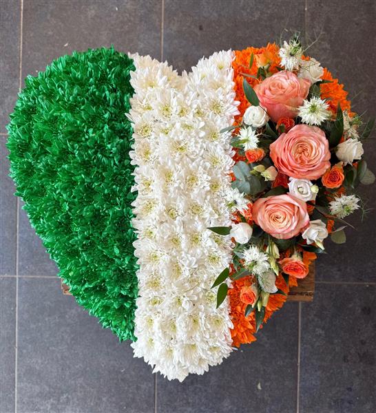 18 inch Based heart in the colours of the Irish Flag - a special tribute for your loved one