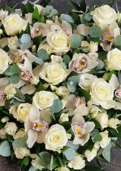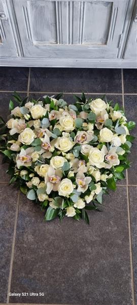 Closed with made with the finest cream roses and orchid heads with stunning foliage - Standard size 12 inch