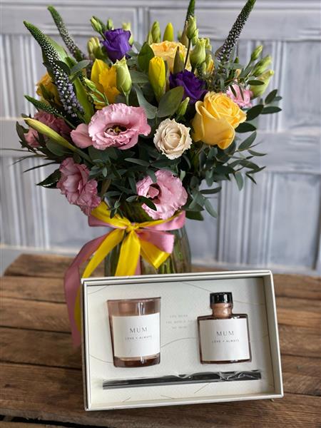 Beautiful Mother’s Day vase made with the finest quality flower’s with Katie Loxton Candle and Diffuser gift set