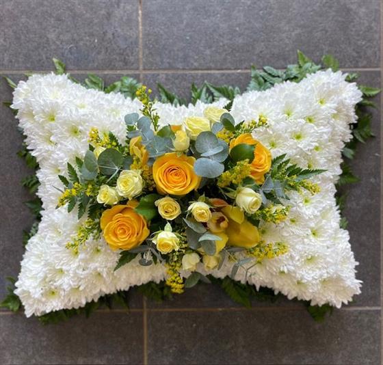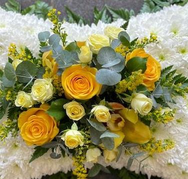 • The coffin flowers for my Godmother were even better than I hoped. Bright, beautiful and perfect.