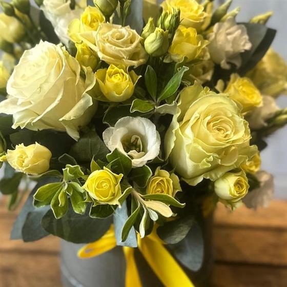A cheerful cluster of sunny petals and soft foliage, designed to bring brightness and balance to any space.